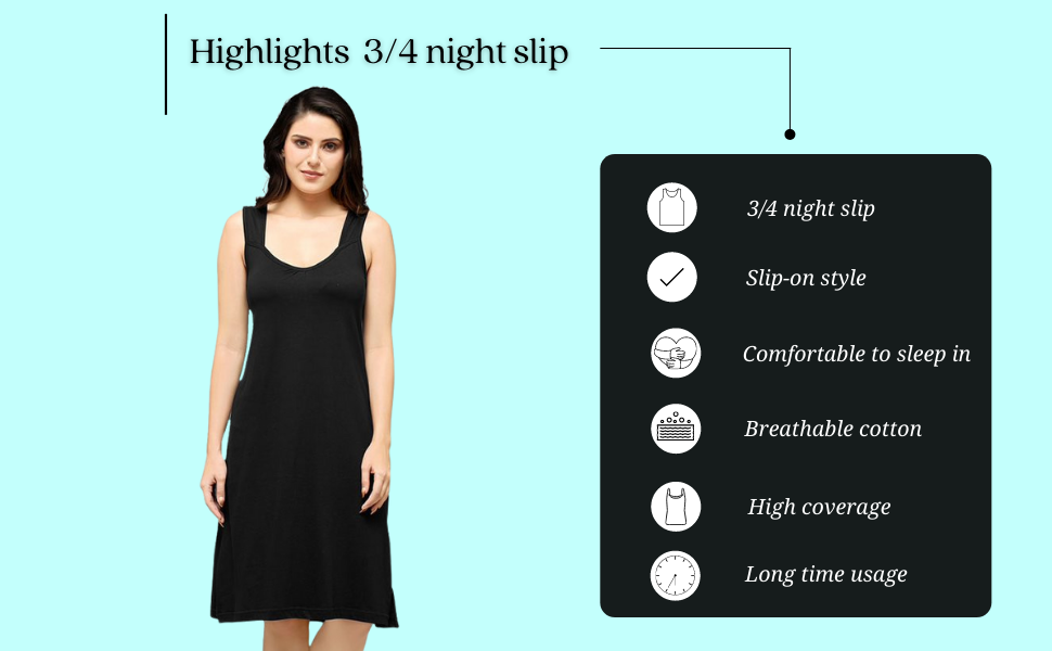Slip into our comfortable, soft and cool night slip for a comfortable sleep every night. Knitted with top-notch premium cotton to keep you cool all night. Its sweat absorbent & quick dry feature gives you a non-sticky experience, even during hot summer nights.