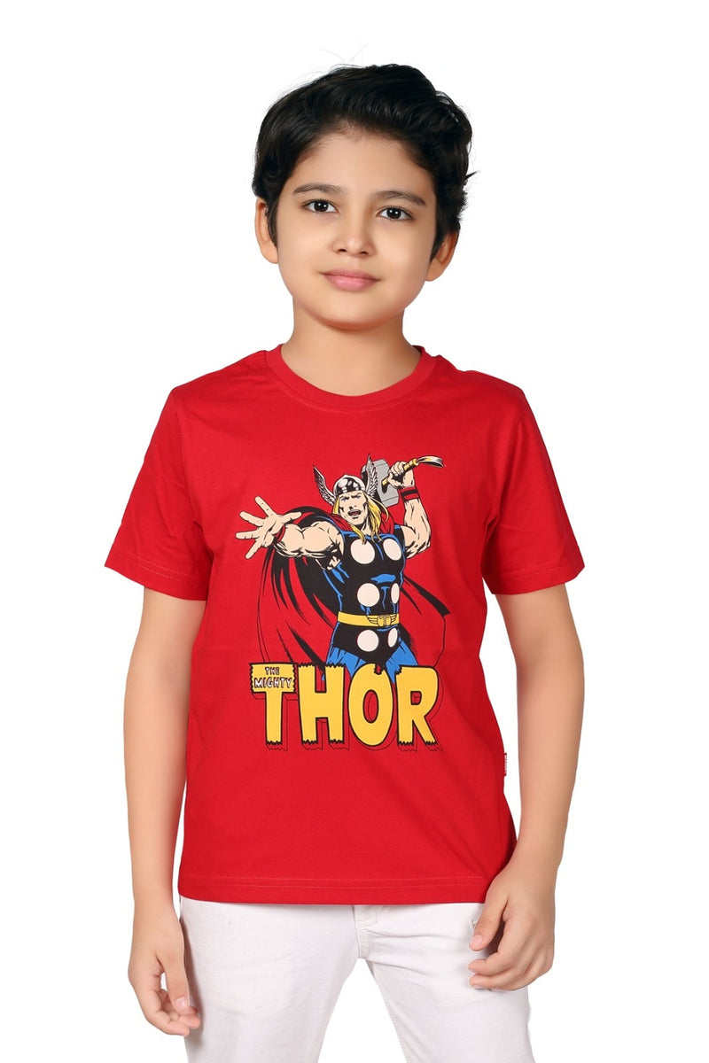 Boys Printed Cotton-Blend T-Shirt | Round Neck Short Sleeve Regular Fit Daily Wear Tee - Red - 3015