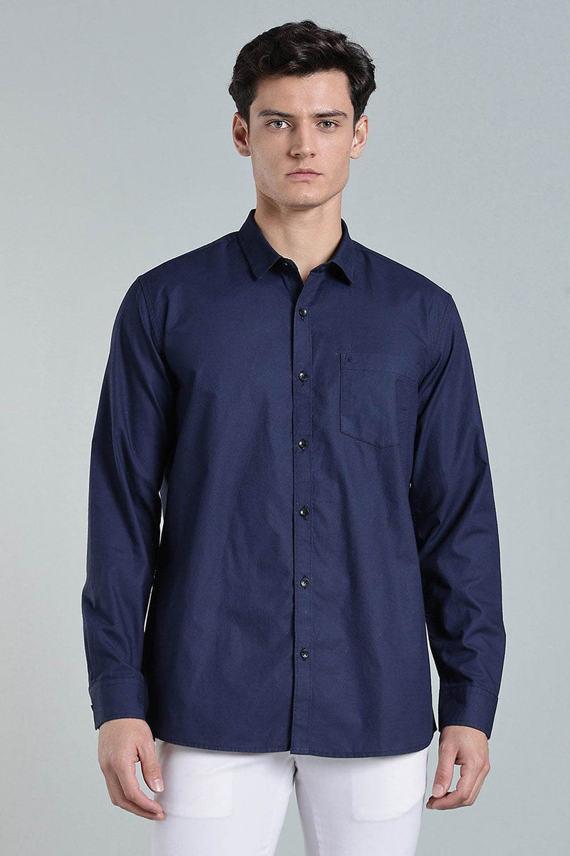 Enhance Men’s Solid Cotton Casual Shirt – Full Sleeves, Patch Pocket & Button Placket - Dark Navy - SA13