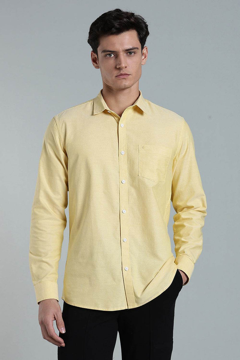 Enhance Men’s Solid Cotton Casual Shirt – Full Sleeves, Patch Pocket & Button Placket - Yellow - SA16