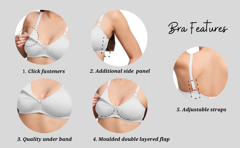- For a hassle-free and healthy breastfeeding, this ultra-comfortable bra can be worn with any outer garment
