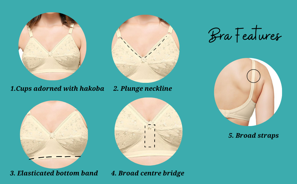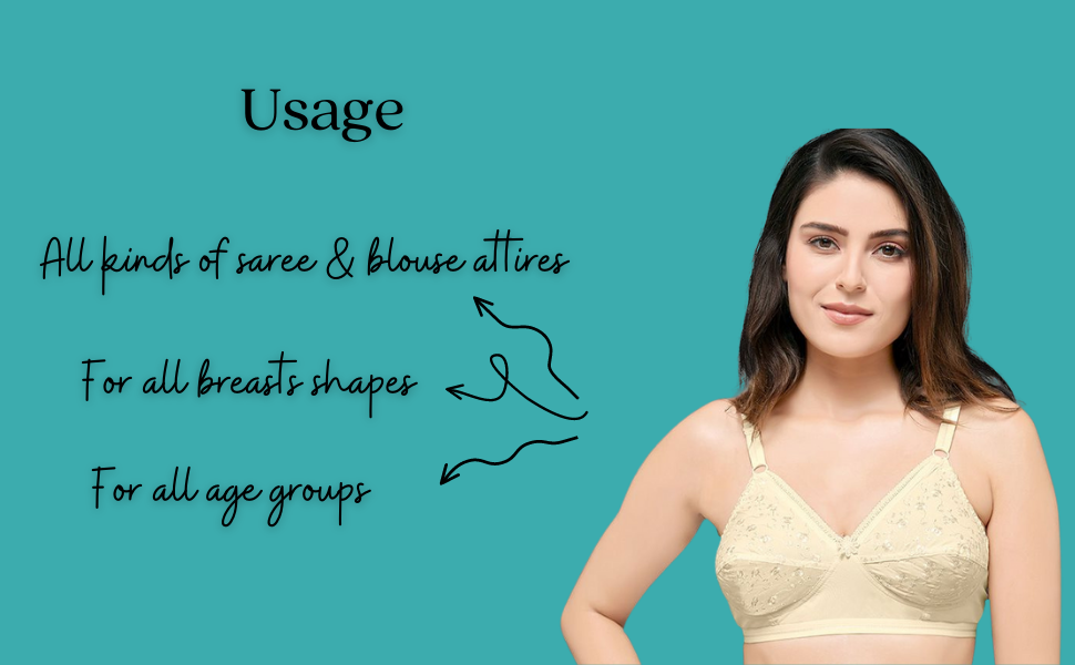 - The bra with a Deep V-Neck line and a broad center bridge makes it perfect for a saree.