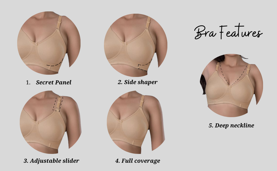 - Center part for proper separation of breasts and prevents rubbing against each other.