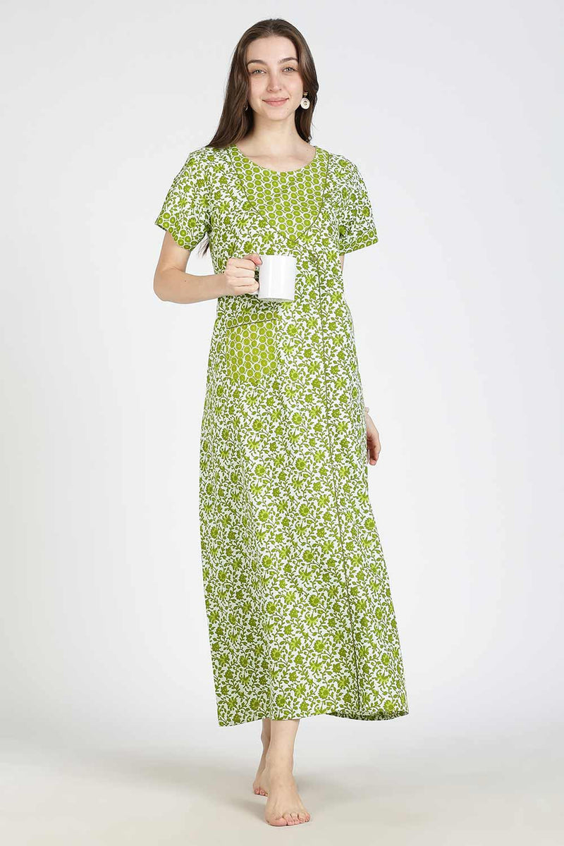 Floral Garden Print Design – Elegant floral pattern that adds feminine charm, making it suitable as stylish daily wear nighty and printed cotton sleep dress