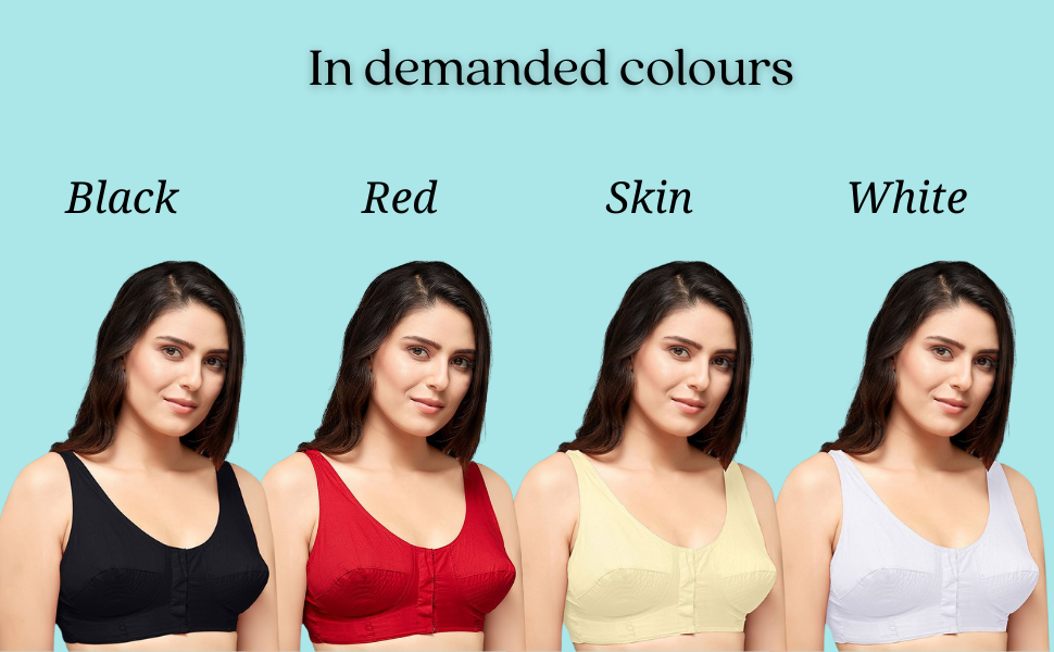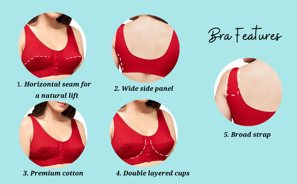 Double layered full coverage front open bra. Cut and sew full coverage cotton bra which provides maximum comfort and support throughout the day.The double layered minimiser cups makes it an ideal match for larger busts.