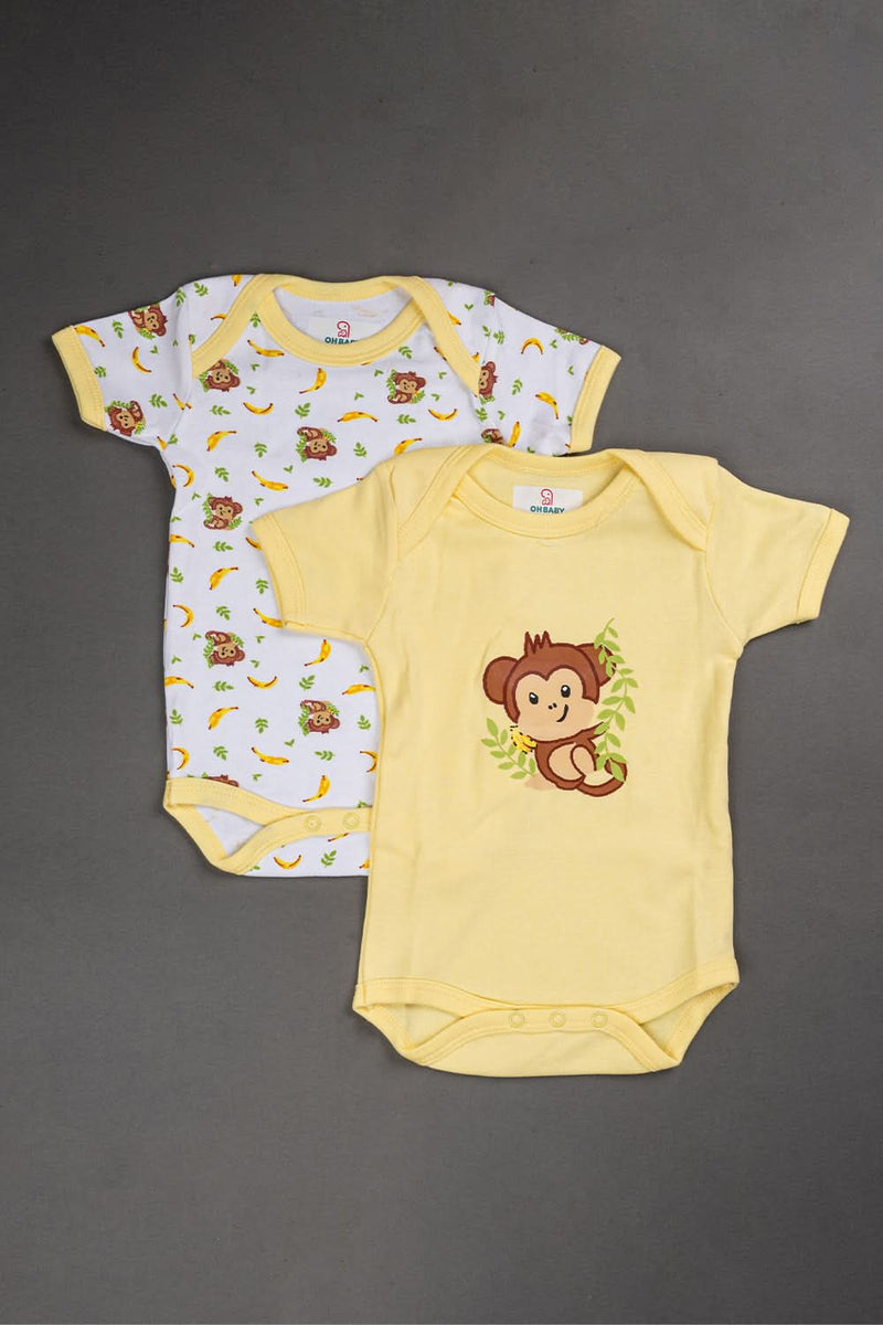 Oh Baby Cotton Interlock Knit Animal Print Halfsleeve Onesies Pack Of - 2 - Yellow & Assorted - S203