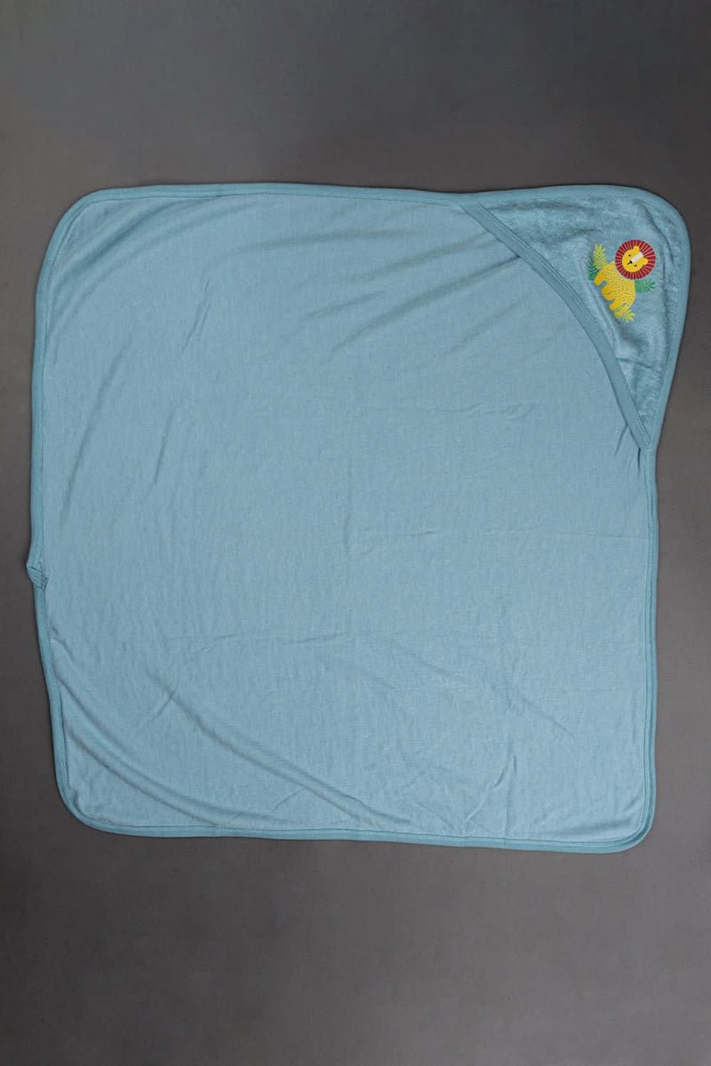 Oh Baby Cotton Interlock Terry Knit Animal Print Hooded Towel - Blue - Ht02