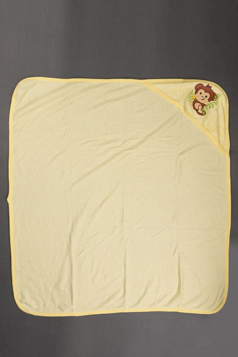 Oh Baby Cotton Interlock Terry Knit Animal Print Hooded Towel - Yellow - Ht03