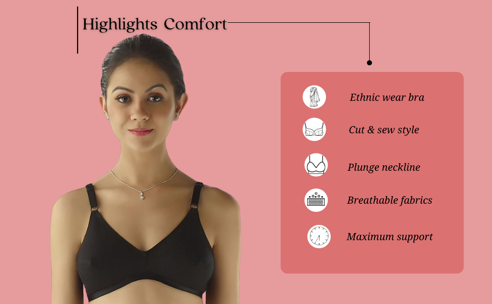 An everyday bra weaved with high-quality cotton, is super durable, has a lace neckline for a tint of lushness, and offers comfort all day; Suitable for salwar, Kurtis, and bloused attires.