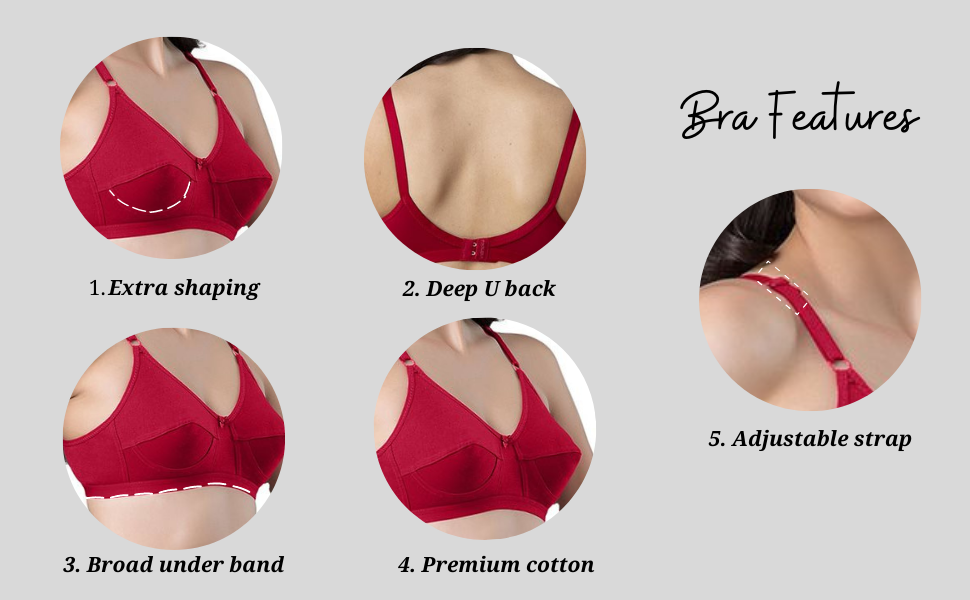 - Back closure bra with adjustable hook & eye settings to adjust your fit.