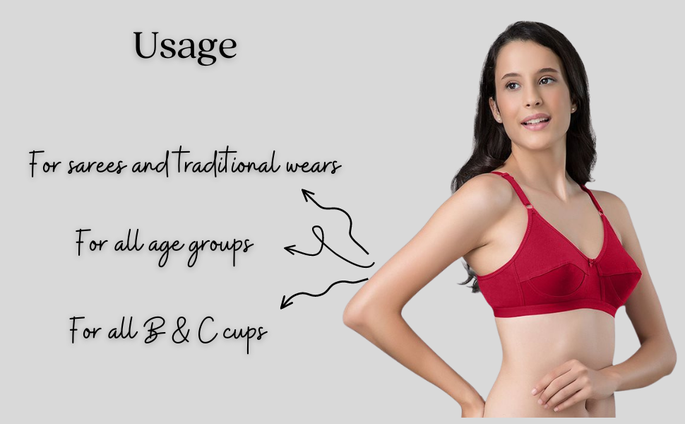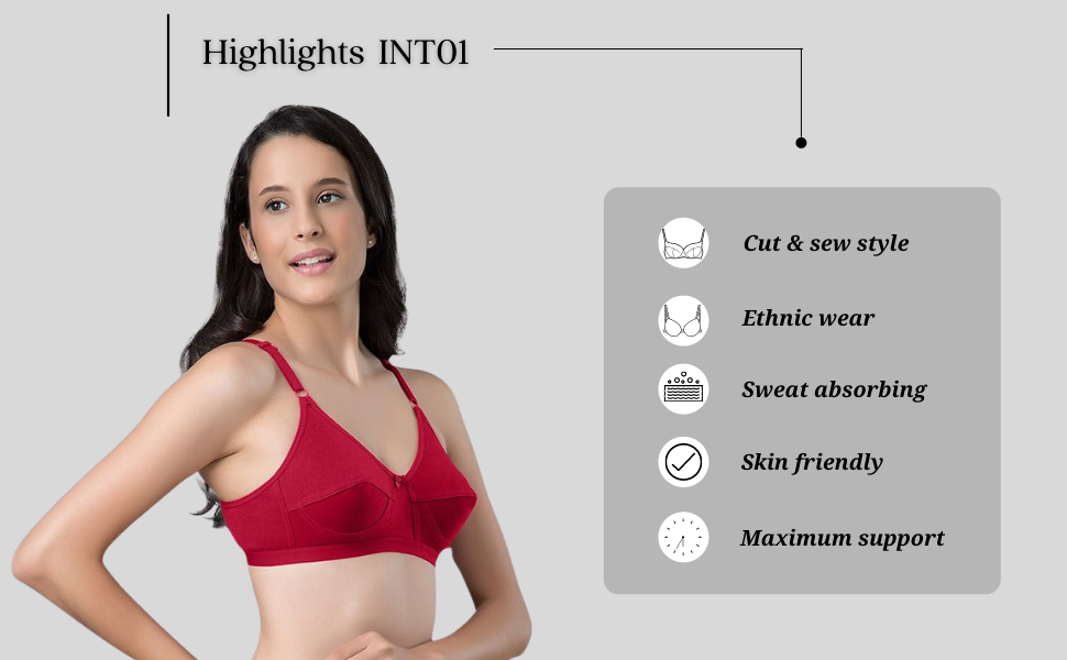 This bra is the go to choice for ethnic wear, specially bloused attires. Crafted with cut and sew style, skin-friendly cotton-rich fabric and shaping elements to give a natural lift.