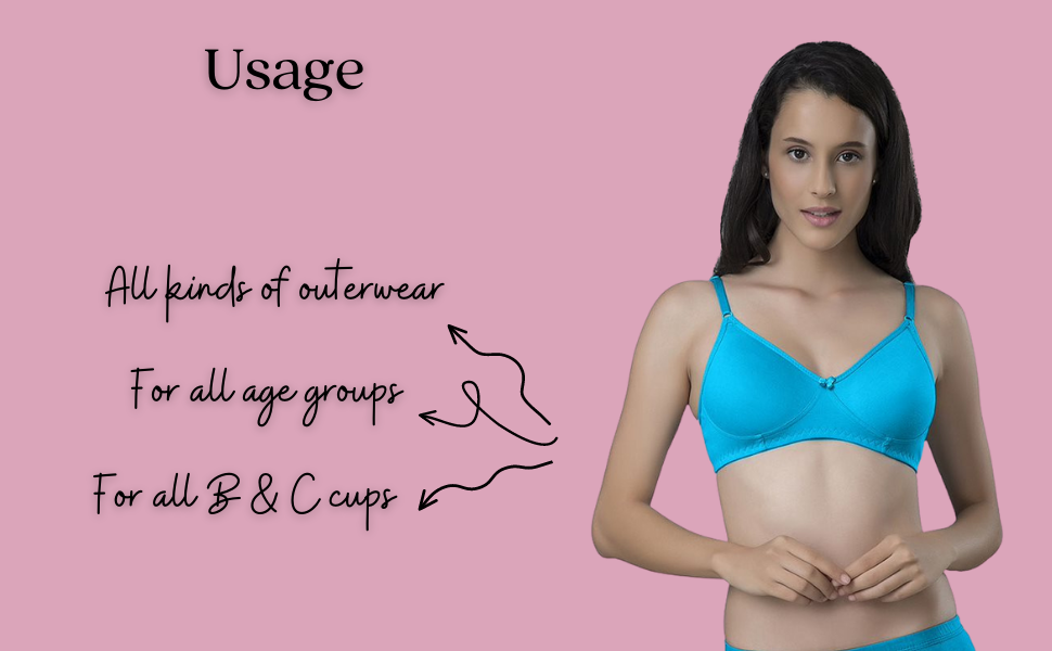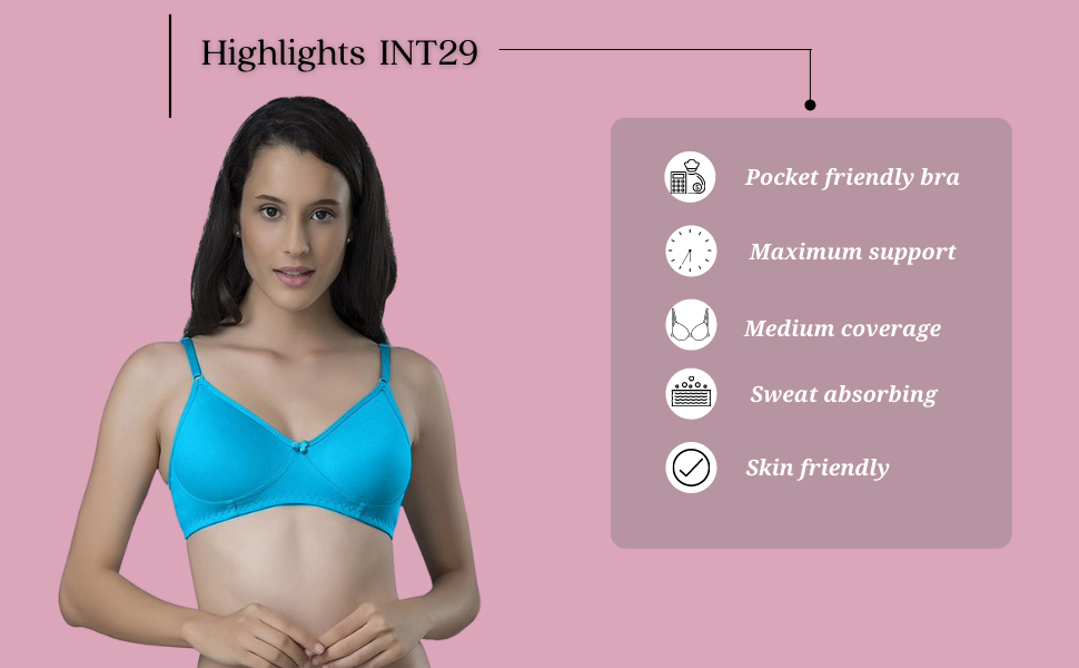 Synonym of comfort and pocket-friendly, in short simply the best everyday wear in budget. Cotton rich, lightweight medium coverage bra with single-layered moulded cup and quality thin strap. Goes well with your everyday, modern and casual wear.