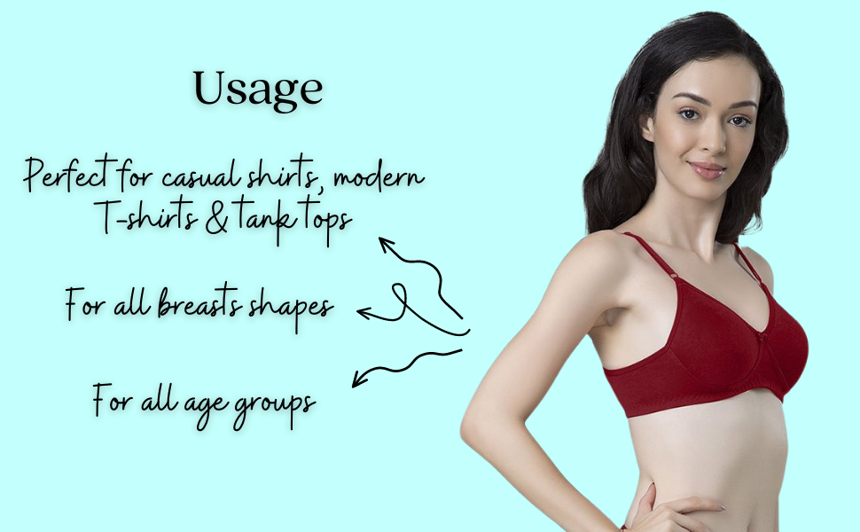 This Pocket-friendly T-shirt bra from Naiduhall is designed to give a polished appearance with its moulded cups. A perfect blend of support, comfort and style. Also, encompass the bulges, and spread the breast mass evenly across to give a spotless look.