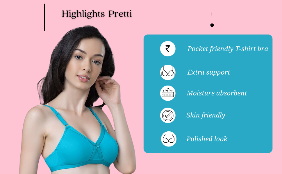 Look prettier both inside and out with our Pretti bra from Naidu hall. Here comes Pretti from Naidu hall, The T-Shirt bra specialized in giving a smooth and polished outlook that too spending less from your pocket. Enjoy an extra level of comfort with its elasticated crisscross design.