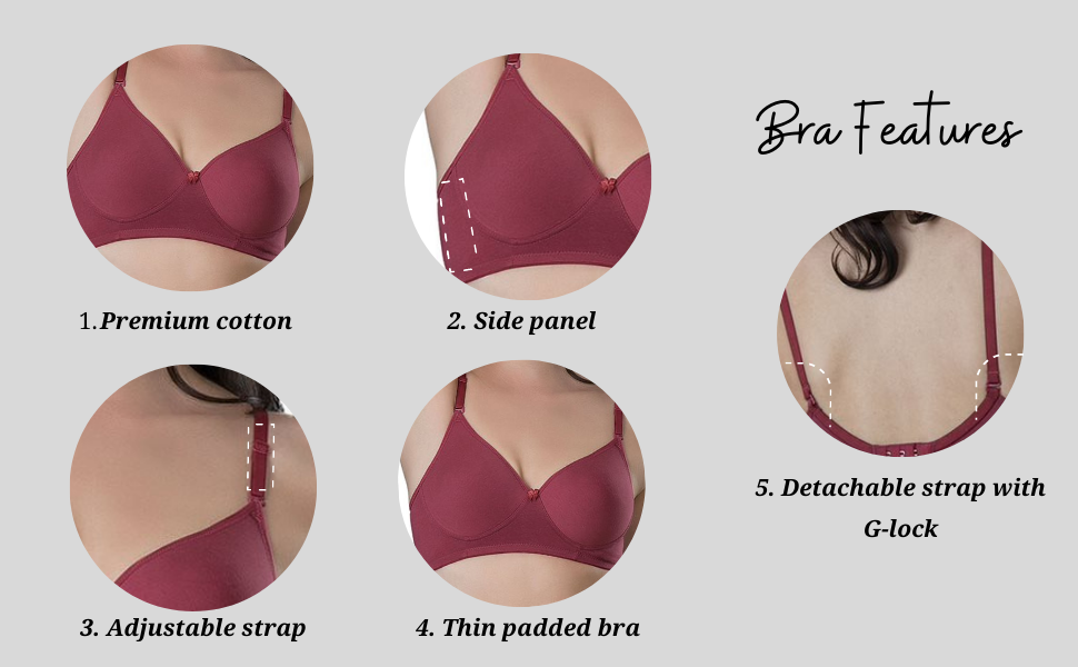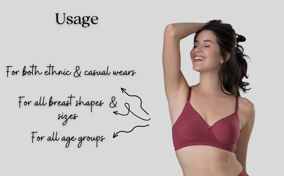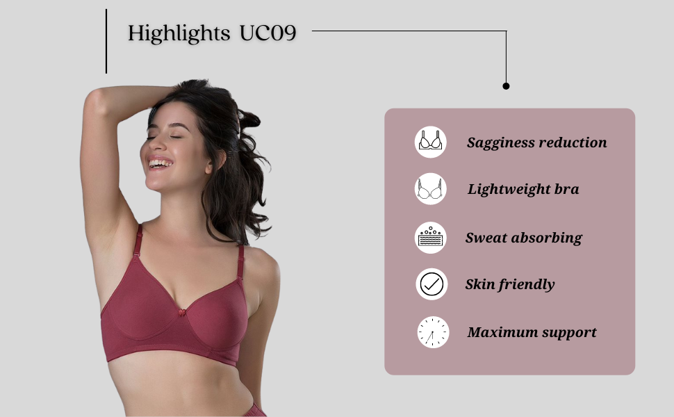 Your love for the well-groomed and polished look is designed as UC09-lightweight bra. The bestselling and most demanded bra in our collection. Truly soothing, Thin padded, Wire-free with Ultra-soft cotton cups for an enhanced and sleek look. Crafted for long and daily usage.