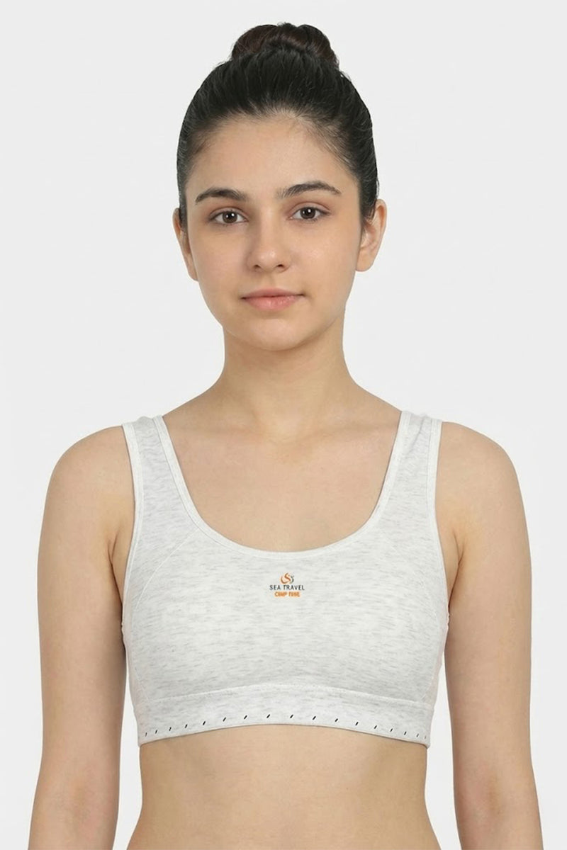 This teen girls’ printed padded sport bra gives a perfect blend of comfort, support, and style. Made from a breathable cotton-polyester-spandex blend, it’s sweat-absorbent and gentle on sensitive skin — ideal for school, casual wear, or light activity. The medium-coverage padded cups offer modest shaping and coverage without overwhelming bulk, while the non-wired, pull-on design ensures easy wear and irritation-free comfort. Its seamless knit construction enables a smooth, invisible finish under tops and uniforms. The cute printed design adds a fun, youthful touch — making this bra a go-to for teens who value comfort AND style. Note: This is a hygiene-based product and is non-returnable. Please check size carefully before ordering.