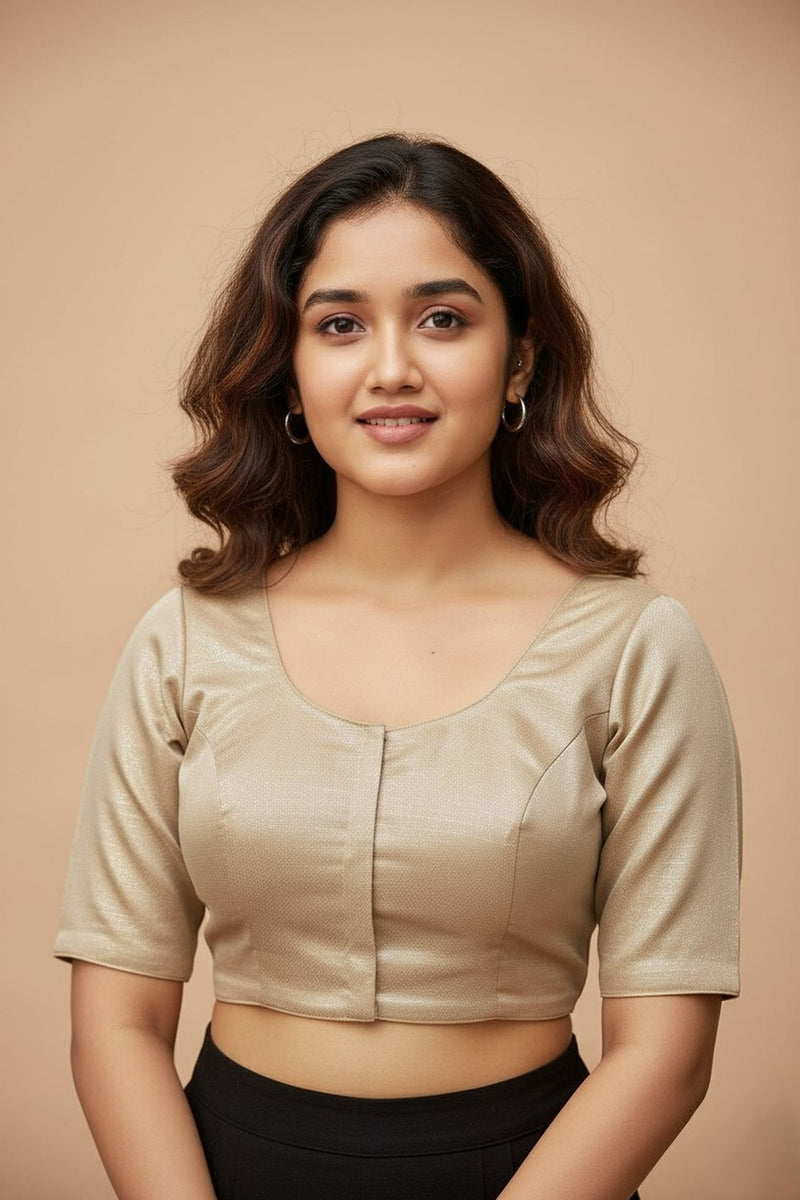 Make every occasion glamorous with this women’s silk blend blouse, designed in a shimmer fabric for a stylish festive look. This padded blouse for women features a front open design with hook closure, a flattering round neckline, and a princess cut silhouette for a contoured fit. The elbow sleeves and round back style add elegance, making it the perfect silk blend blouse for sarees. Whether styled for weddings, parties, or festive gatherings, this front open padded blouse offers the right mix of comfort, shimmer, and sophistication.