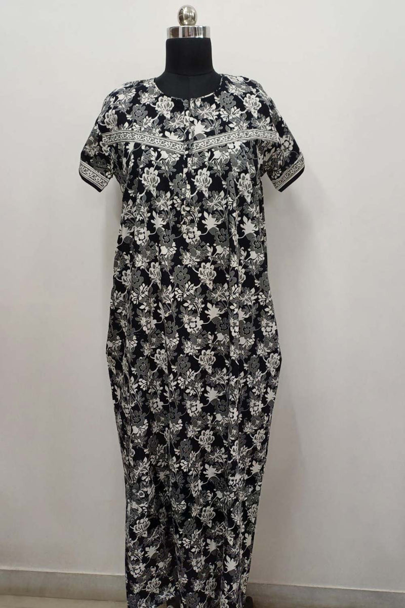 Discover comfort and style with this women’s nighty, crafted from a soft cotton blend fabric for everyday use. This full length nighty for women features a relaxed fit, short sleeves, and a round neckline with pleated detailing, making it ideal for both sleepwear and casual home wear. Perfect as a daily wear nighty, cotton night dress, or stylish printed women’s nighty, it offers breathable comfort with long-lasting durability. Designed to keep you cool and relaxed, this women’s cotton nighty is easy to wash and maintain, making it a must-have addition to your nightwear collection.