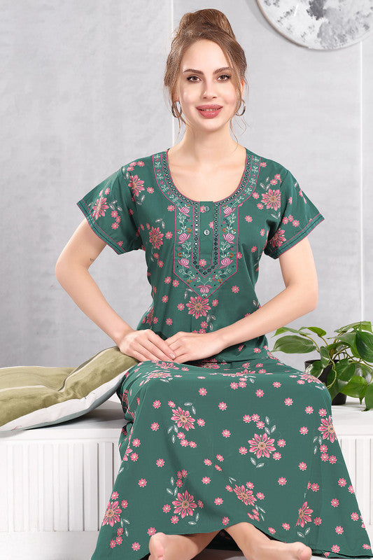 Women's Nighty | Soft Blended Fabric Comfortable Nightwear & Stylish Sleepwear - Teal Green - 4498